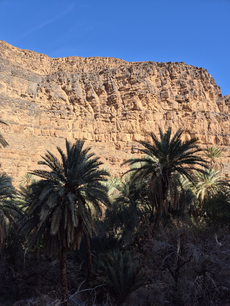 In einem der vorherigen Beiträge hatten wir schon mal kurz erwähnt, dass Agadir zwar eine Stadt in Marokko ist, aber das Wort eigentlich „befestigter Ort“ oder „Festung“ bedeutet. Historisch diente ein Agadir als Speicherfestung – ein gut gesichertes Lager für lebenswichtige Güter: Getreide, Olivenöl, Salz, Gewürze und manchmal auch Waffen. Im Falle eines Angriffs konnten die Anwohner sich selber und ihr Vieh ebenfalls in Sicherheit bringen. Der Agadir Id Aissa ist eine solche Speicherfestung und zwar eine sehr imposante. Er ist um die 800 Jahre alt, wurde aber 2007 restauriert und kann heute besichtigt werden. Zu Fuße des Agadirs liegt der Ort Amtoudi, die Straße dorthin ist eine Sackgasse. Es gibt einen Campingplatz, der vermutlich ausschließlich von den Touristen genutzt wird, die sich den Agadir anschauen wollen, bzw. in der naheliegenden Schlucht wandern wollen.