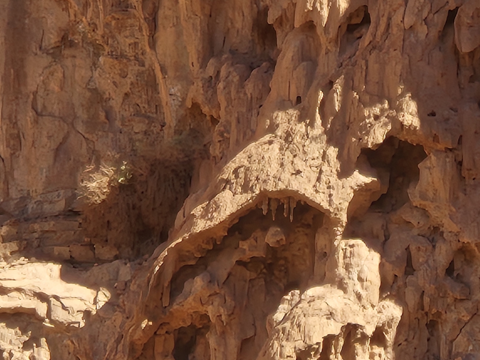 Eigentlich wollen wir am ersten Tag erst die Festung besteigen, doch am Morgen liegt das ganze Tal im Nebel. Wir sind uns nicht sicher, ob und wann sich der Nebel auflösen wird, daher beschließen wir zuerst die Schlucht zu durchwandern. Wir gehen zunächst durch den Ort, am Ende werden die Felswände enger und es gibt keine Häuser mehr. Wir folgen dem Flusslauf und sind mal wieder total begeistert von den steilen Wänden, die rechts und links nahezu senkrecht aufsteigen. Es geht über „Stock und Stein“ bis wir an einer Engstelle ankommen. Hier staut sich das Wasser und bildet kleine Tümpel. In diesen Tümpeln lebt ein kleine Fischart, die nur in diesen Tümpeln lebt. Wohl ein Überbleibsel aus der Zeit, als der Fluss ganzjährig und viel Wasser geführt hat.