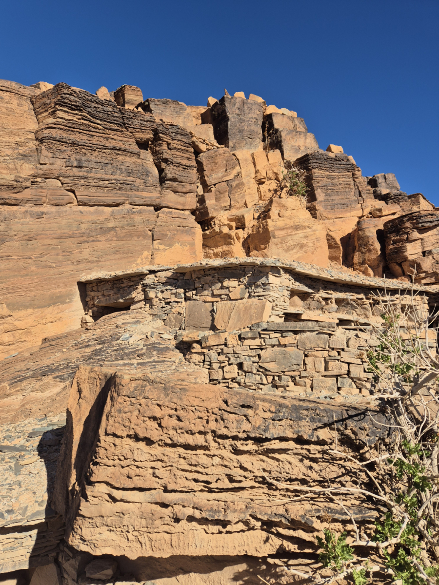 Das Teil ist echt beeindruckend, oben auf den Fels gebaut und gesichert. Jede Familie aus Amtoudi hatte dort ihre eigenen Räume. Über die Dächer der Gebäude wurde der Regen aufgefangen und über ein System von Rinnen in die Zisternen geführt. Überall sind die Lagerräume zu erkennen, teilweise konnten die nur über Leitern erreicht werden, alles sehr abenteuerlich.