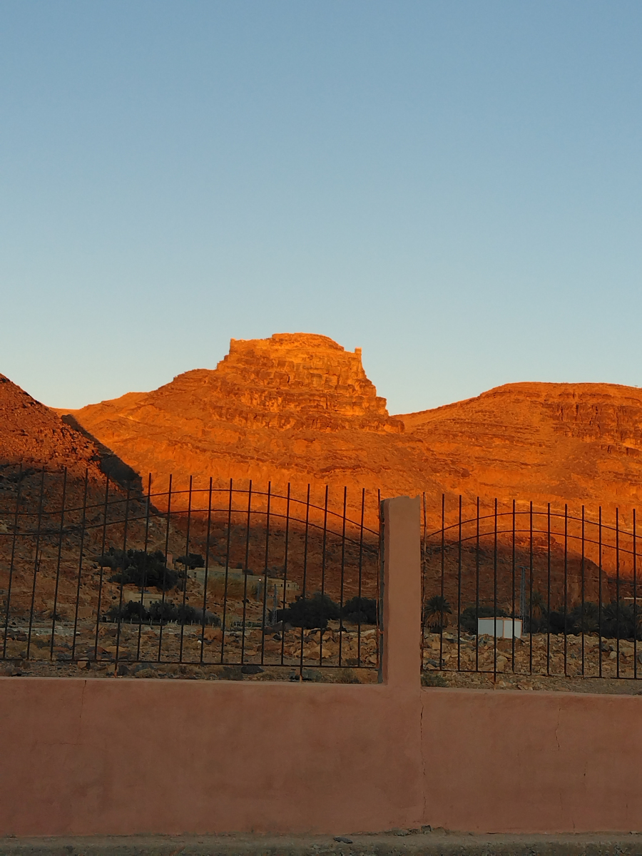 In einem der vorherigen Beiträge hatten wir schon mal kurz erwähnt, dass Agadir zwar eine Stadt in Marokko ist, aber das Wort eigentlich „befestigter Ort“ oder „Festung“ bedeutet. Historisch diente ein Agadir als Speicherfestung – ein gut gesichertes Lager für lebenswichtige Güter: Getreide, Olivenöl, Salz, Gewürze und manchmal auch Waffen. Im Falle eines Angriffs konnten die Anwohner sich selber und ihr Vieh ebenfalls in Sicherheit bringen. Der Agadir Id Aissa ist eine solche Speicherfestung und zwar eine sehr imposante. Er ist um die 800 Jahre alt, wurde aber 2007 restauriert und kann heute besichtigt werden. Zu Fuße des Agadirs liegt der Ort Amtoudi, die Straße dorthin ist eine Sackgasse. Es gibt einen Campingplatz, der vermutlich ausschließlich von den Touristen genutzt wird, die sich den Agadir anschauen wollen, bzw. in der naheliegenden Schlucht wandern wollen.