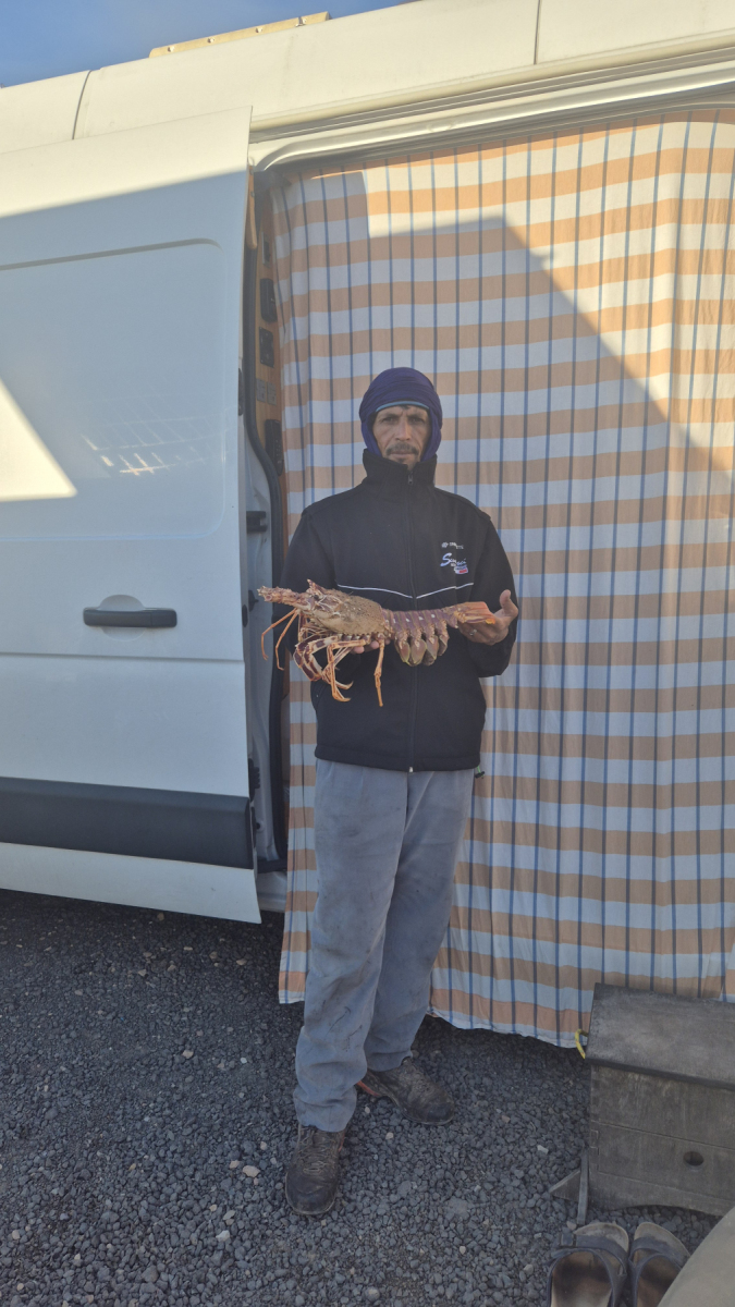 Unser Campingplatz liegt am Meer, wir können das ständige anrollen der Wellen hören. Besonders in der Nacht, wenn alle anderen Geräusche wegfallen, ist das richtig laut. Schon am ersten Abend kommt ein Fischverkäufer mit seinem uralten, verrosteten Peugeot-Mofa. Auf dem Gepäckständer eine Plastikkiste, in der befindet sich der aktuelle Fang in einer Wolldecke eingeschlagen. Er hat „nur“ eine Languste dabei, die er uns gerne verkaufen würde. Wir lehnen dankend ab, hätten aber gerne für den nächsten Tag eine Dorade. Und so bekommen wir einen wunderbaren Fisch, den er uns natürlich am Platz auch filetiert. Übrigens hatten alle unsere Campingplätze am Atlantik eigens dafür hergerichtet Waschbecken, in denen die Camper oder Fischverkäufer die Meeresfrüchte säubern können.