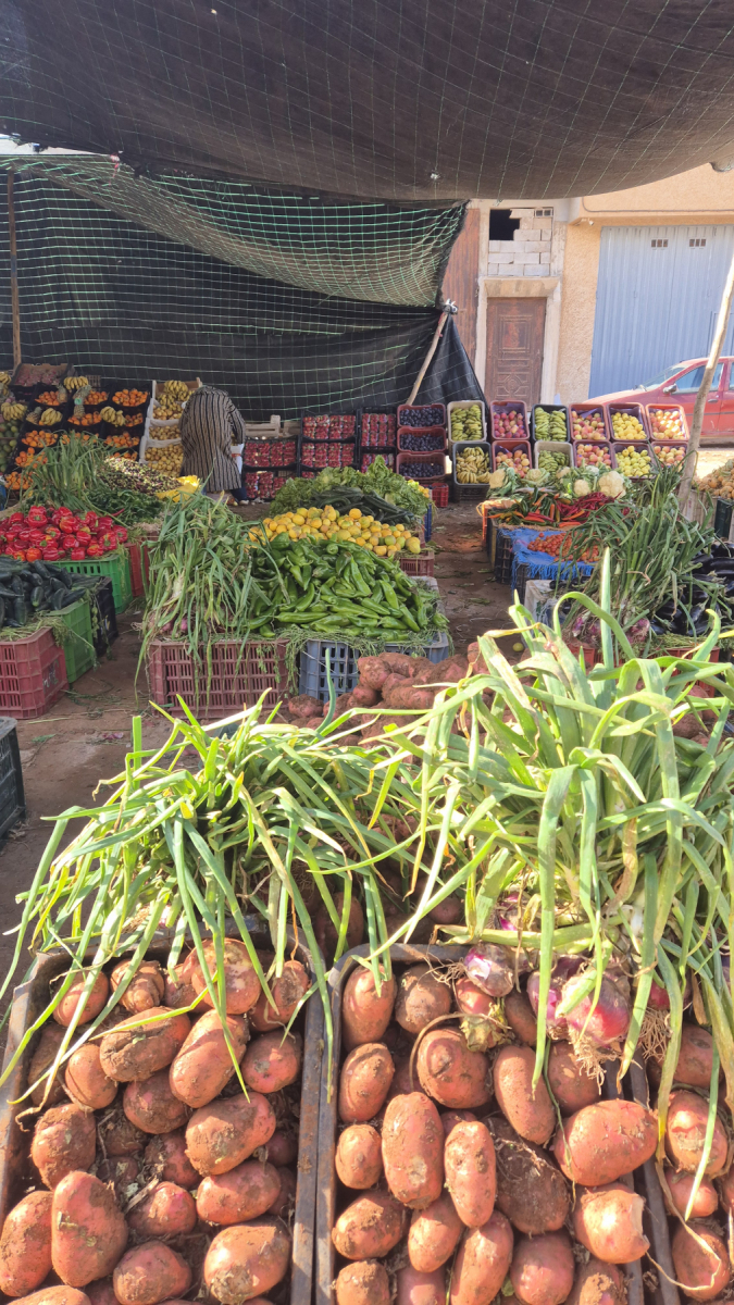 Der Ort selber ist vom Tourismus geprägt und zeigt sich so wie die meisten Orte am Meer, stark in die Jahre gekommene Uferpromenade, halb zerfallene Hotel- und Restaurant-Gebäude. Zwei drei Straßen von der Promenade weg beginnt dann das normale marokkanische Leben. Hier verbringen die Bewohner, in für uns Westeuropäer schwierig zu verstehenden Umständen ihr normales Leben. Wir besuchen den Wochenmarkt, der sich hier eine breite Straße entlang ausbreitet. Ähnlich wie schon in Sidi Ifni, interessant anzusehen. Wir kaufen in der bereits beschriebenen Manier frisches Obst und Gemüse ein.