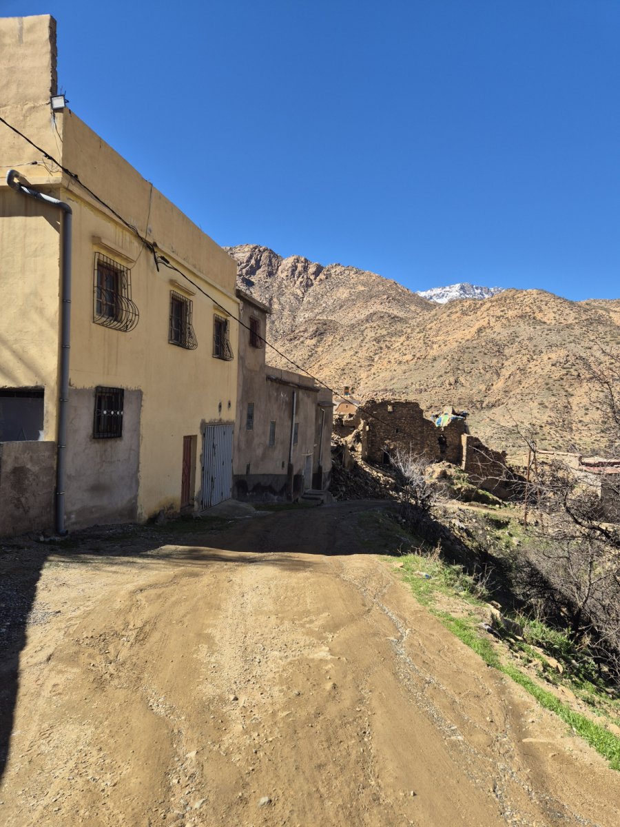Wir haben einen Campingplatz in der Nähe der Stadt gefunden. Von hier aus machen wir eine Mopedtour, die uns ein Stück weit in den Hohen Atlas führt. Es geht auf einer engen Straße ins Gebirge. Wir schlängeln uns durch eine atemraubende Landschaft. Die Straße folgt einem Tal das der Fluss über die letzten Jahrtausende gegraben hat. Immer wieder sehen wir Dörfer, die sich an den Fels schmiegen oder direkt am Fluss liegen. Es gibt Abschnitte wo das Tal breiter ist, dort gibt es eine üppige Vegetation und Landwirtschaft.