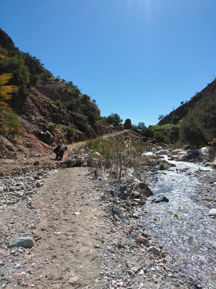 Wir haben einen Campingplatz in der Nähe der Stadt gefunden. Von hier aus machen wir eine Mopedtour, die uns ein Stück weit in den Hohen Atlas führt. Es geht auf einer engen Straße ins Gebirge. Wir schlängeln uns durch eine atemraubende Landschaft. Die Straße folgt einem Tal das der Fluss über die letzten Jahrtausende gegraben hat. Immer wieder sehen wir Dörfer, die sich an den Fels schmiegen oder direkt am Fluss liegen. Es gibt Abschnitte wo das Tal breiter ist, dort gibt es eine üppige Vegetation und Landwirtschaft.