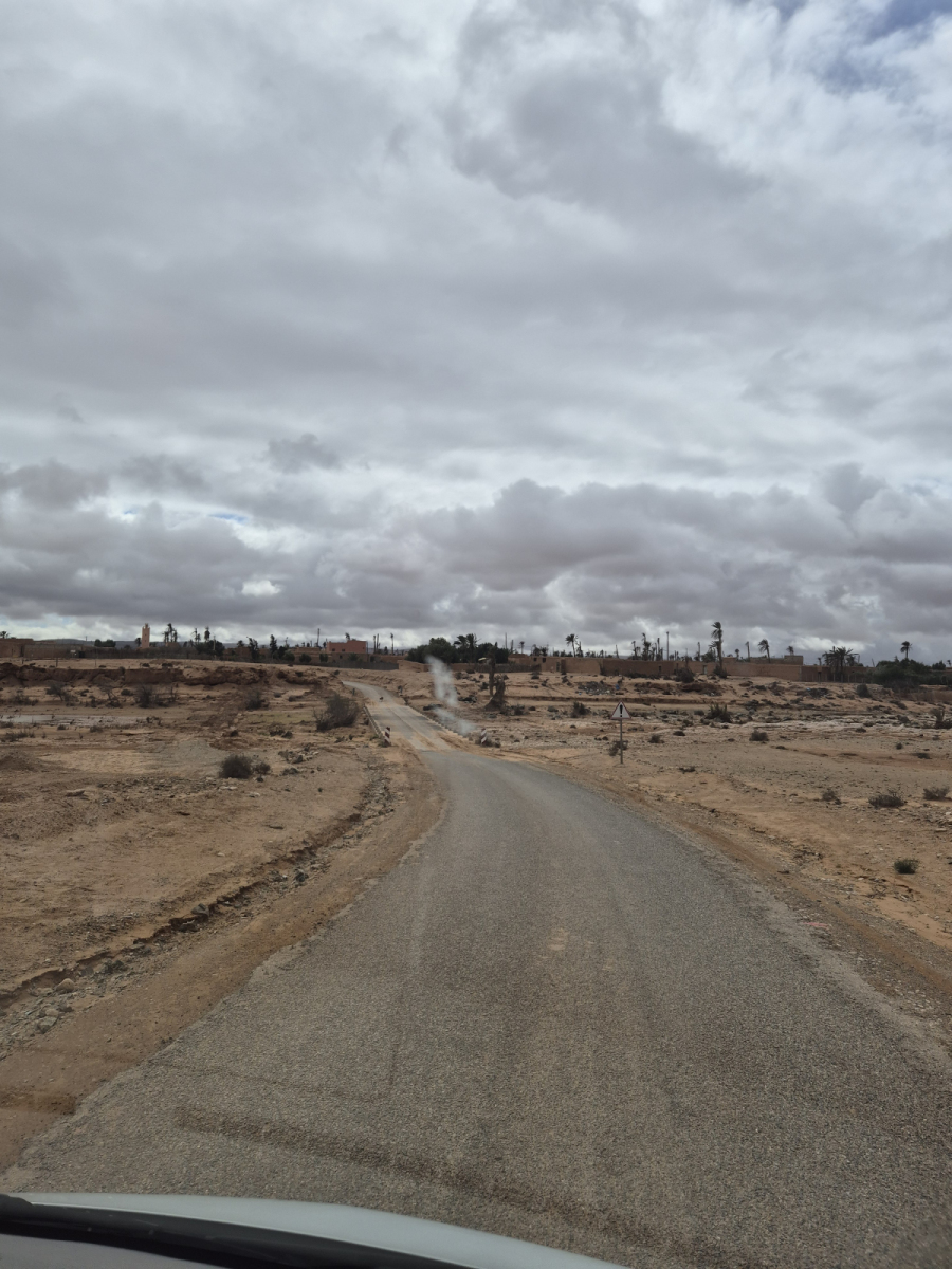 Das klingt jetzt erstmal romantischer als es ist. Uns ging es jedenfalls so, dass wir eine aus Filmen und Comics geprägte Vorstellung einer Oase hatten. In der Realität sieht es dann doch etwas anders aus, aber nicht weniger interessant. Zunächst aber erstmal ein paar Bilder von der Anreise. Wir fahren wieder zurück nach Guelmim und sind sehr von der Strecke angetan. Da ändert das dritte Knöllchen wegen zu schnellen Fahrens auch nichts 😉 „Der Fahrer“ möchte zu seiner Reputation erläutern, dass es in Marokko weder ein Ortseingangs- noch ein Ortsausgangsschild gibt. Meist wird vor einem Ort (das können auch drei Häuser sein) die Geschwindigkeit mit 60 Km/h angezeigt. Kein Problem, es wird runtergebremst auf exakt 60 Km/h. Doch wann hört der Ort auf? Das ist Ermessenssache, also denkt „der Fahrer“ sich, hier stehen keine Gebäude mehr, somit ist der Ort zu Ende und beschleunigt. FEHLER! 200 Meter von dieser Stelle entfernt steht der Polizist mit der Laserkanone und winkt, ZACK weiß „der Fahrer“ sofort, der Ort ist noch nicht zu Ende! 150 Dirham weil 67 statt 60 Km/h 🙁