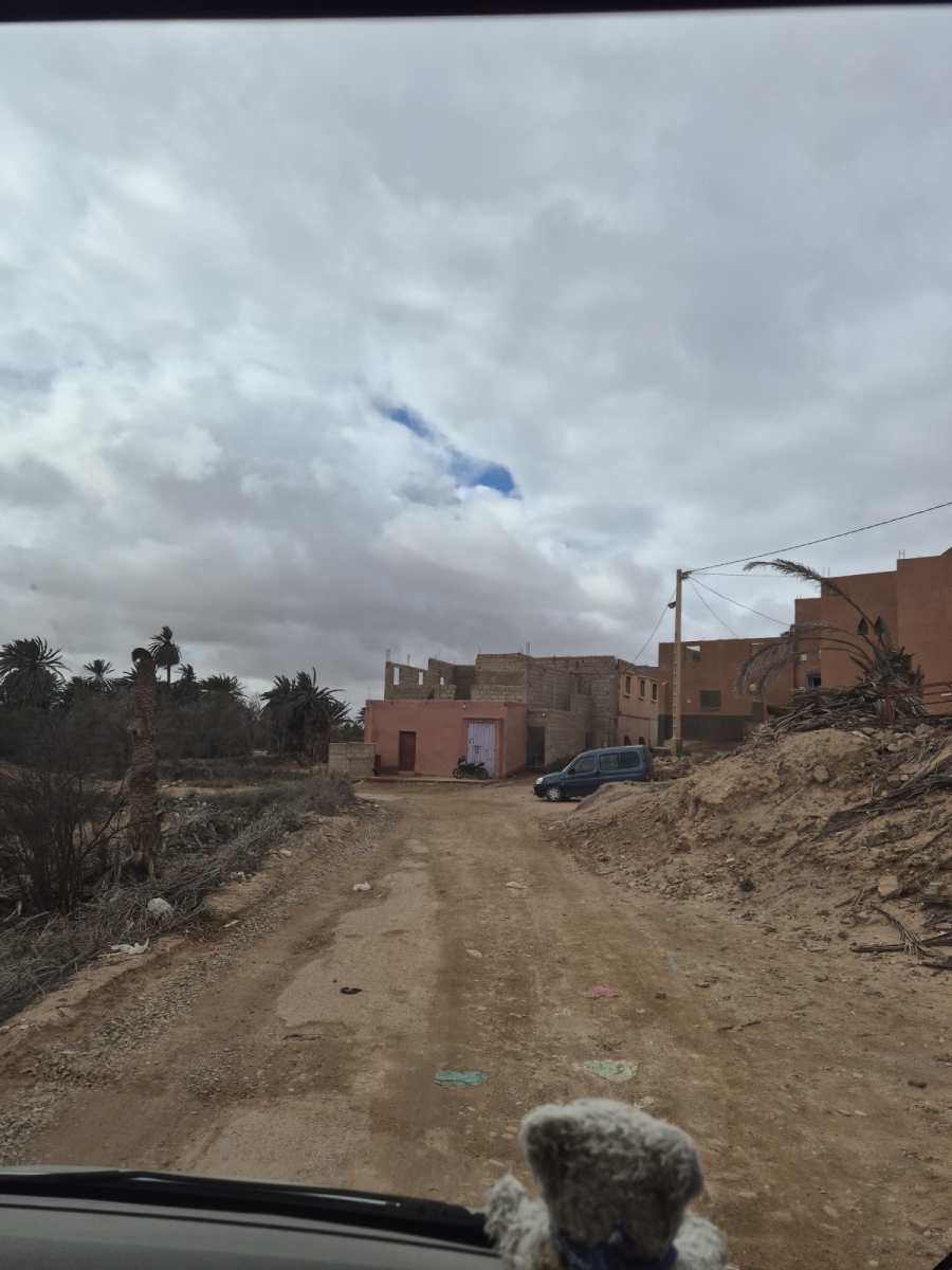 Das klingt jetzt erstmal romantischer als es ist. Uns ging es jedenfalls so, dass wir eine aus Filmen und Comics geprägte Vorstellung einer Oase hatten. In der Realität sieht es dann doch etwas anders aus, aber nicht weniger interessant. Zunächst aber erstmal ein paar Bilder von der Anreise. Wir fahren wieder zurück nach Guelmim und sind sehr von der Strecke angetan. Da ändert das dritte Knöllchen wegen zu schnellen Fahrens auch nichts 😉 „Der Fahrer“ möchte zu seiner Reputation erläutern, dass es in Marokko weder ein Ortseingangs- noch ein Ortsausgangsschild gibt. Meist wird vor einem Ort (das können auch drei Häuser sein) die Geschwindigkeit mit 60 Km/h angezeigt. Kein Problem, es wird runtergebremst auf exakt 60 Km/h. Doch wann hört der Ort auf? Das ist Ermessenssache, also denkt „der Fahrer“ sich, hier stehen keine Gebäude mehr, somit ist der Ort zu Ende und beschleunigt. FEHLER! 200 Meter von dieser Stelle entfernt steht der Polizist mit der Laserkanone und winkt, ZACK weiß „der Fahrer“ sofort, der Ort ist noch nicht zu Ende! 150 Dirham weil 67 statt 60 Km/h 🙁