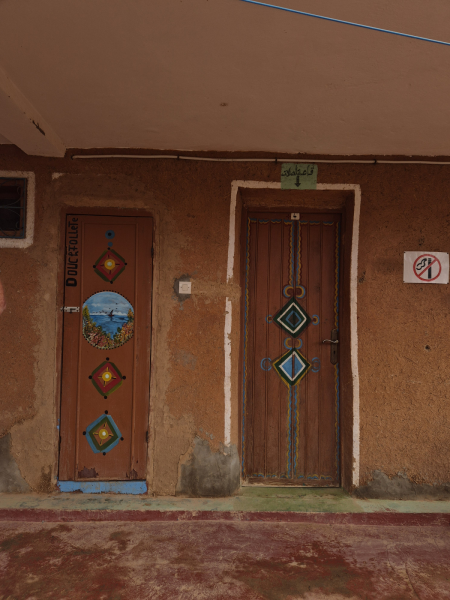 Die Oase war früher ein bedeutender Handelsplatz. Hier kamen die Berber mit ihren Kamel-Karawanen aus den Bergen, bzw. Wüstengebieten und boten ihre Erzeugnisse und Tiere zum Tausch gegen andere Güter an. Es wurde nicht mit Geld bezahlt, sondern ausschließlich getauscht. Leider ist davon heute nichts mehr übrig. Wir besuchen eine fünfhundert Jahre alte Karawanserei (Wikipedia Zitat: Eine Karawanserei war eine ummauerte Herberge an Karawanenstraßen. Reisende konnten dort mit ihren Tieren und Handelswaren sicher nächtigen und sich mit Lebensmitteln versorgen. Große Karawansereien dienten zugleich als Warenlager und Handelsplatz für Im- und Exportwaren.). Hier hat der Nachfahre des ehemaligen Besitzers alle möglichen Dinge aus der Zeit gesammelt und in dem Originalgebäude eine Art Museum eingerichtet. Wir werden herzlich empfangen, natürlich mit dem obligatorischen Minztee. Dann führt er uns durch sein Museum und erzählt zu jedem Ausstellungsstück entweder eine Geschichte oder um was es sich handelt.