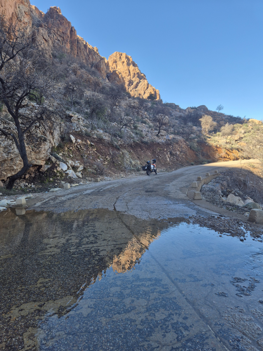 Am Ende der Straße liegt, wie schon erwähnt ein kleines Dorf. Hier stellen wir unser Moped mitten im Ort ab und gehen zu Fuß weiter durch das Flussbett. Hier erwartet uns etwas besonderes, denn hier hat der Fluss einen schmalen Felsstreifen gebildet und die Natur einen Tunnel gegraben, der auf die andere Seite führt. Man kann diesen Tunnel durchwandern, wenn kein Wasser fließt. Wir konnten das nicht, weil der Fluss durch die Regenfälle der letzten Wochen Wasser führt. Wir wandern weiter und sehen auf der anderen Seite wo das Wasser in einem kleinen Wasserfall wieder austritt.