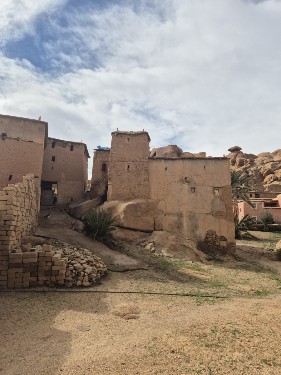 Auf dieser Wanderung laufen wir auch durch ein Berberdorf, in dem noch einige alte Gebäude übrig sind. Von weitem sind diese kaum von den Felsen zu unterscheiden. Klar, weil die das Gestein auch für den Bau der Häuser genutzt haben. An manchen Stellen stehen die Gebäude so nah unter den Felsen, dass man befürchten muss, dass diese in nächster Zeit von den Felsen erschlagen werden könnten.