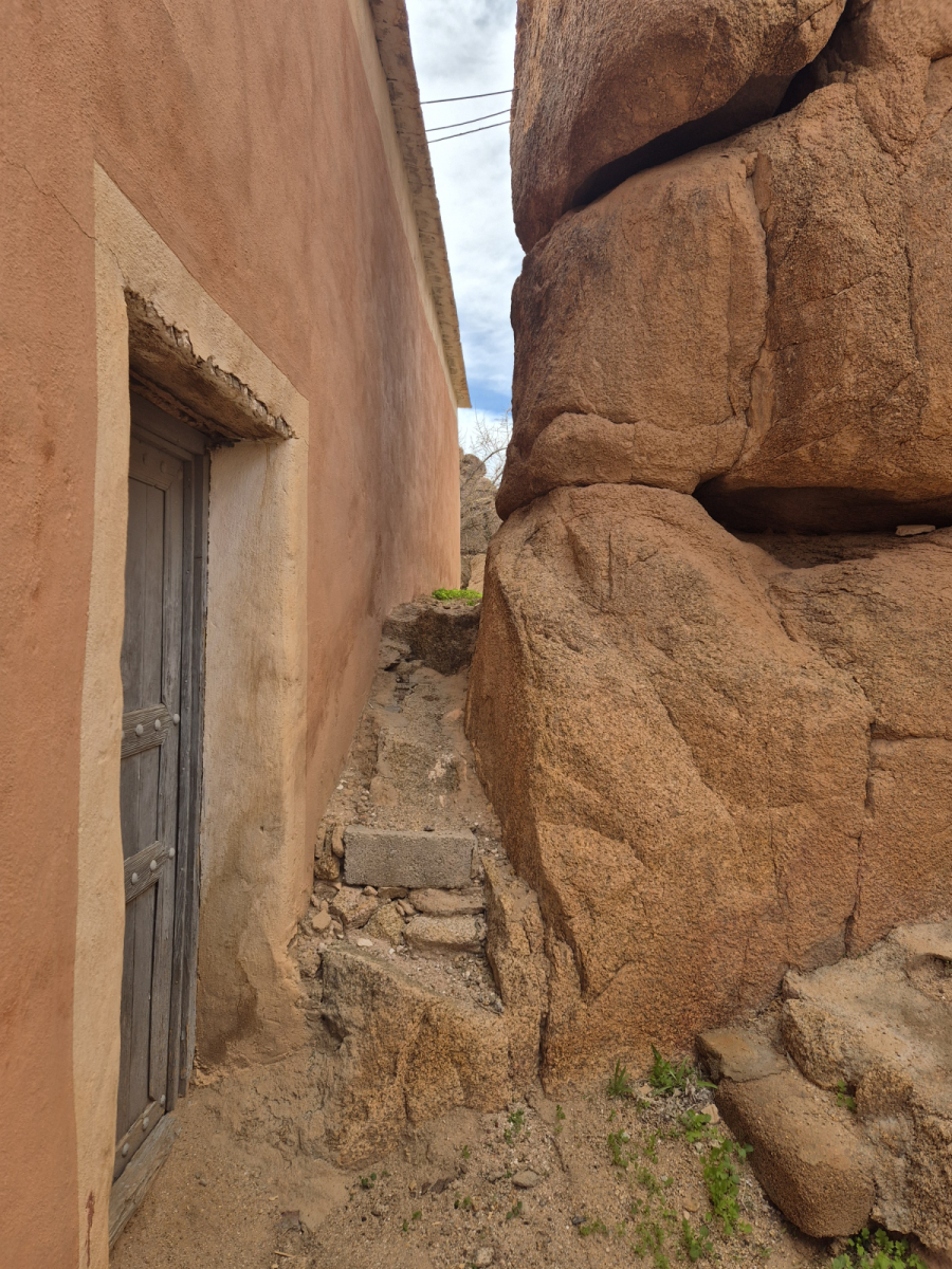 Auf dieser Wanderung laufen wir auch durch ein Berberdorf, in dem noch einige alte Gebäude übrig sind. Von weitem sind diese kaum von den Felsen zu unterscheiden. Klar, weil die das Gestein auch für den Bau der Häuser genutzt haben. An manchen Stellen stehen die Gebäude so nah unter den Felsen, dass man befürchten muss, dass diese in nächster Zeit von den Felsen erschlagen werden könnten.
