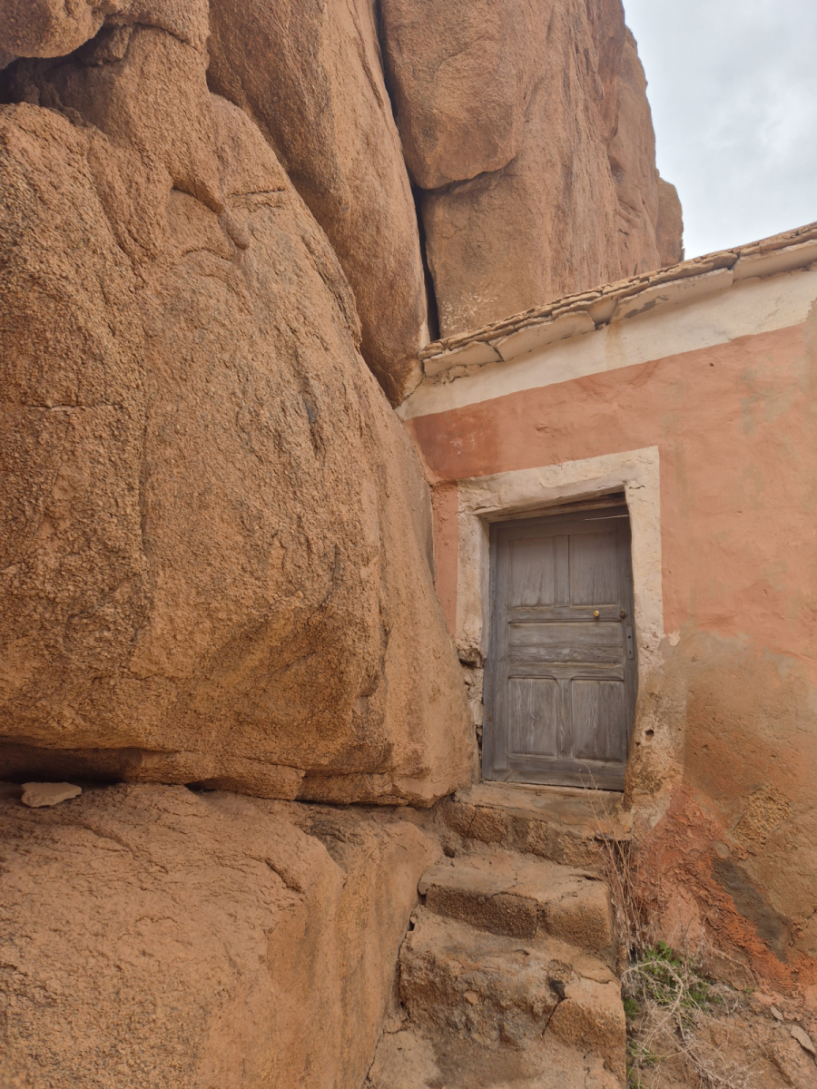 Auf dieser Wanderung laufen wir auch durch ein Berberdorf, in dem noch einige alte Gebäude übrig sind. Von weitem sind diese kaum von den Felsen zu unterscheiden. Klar, weil die das Gestein auch für den Bau der Häuser genutzt haben. An manchen Stellen stehen die Gebäude so nah unter den Felsen, dass man befürchten muss, dass diese in nächster Zeit von den Felsen erschlagen werden könnten.