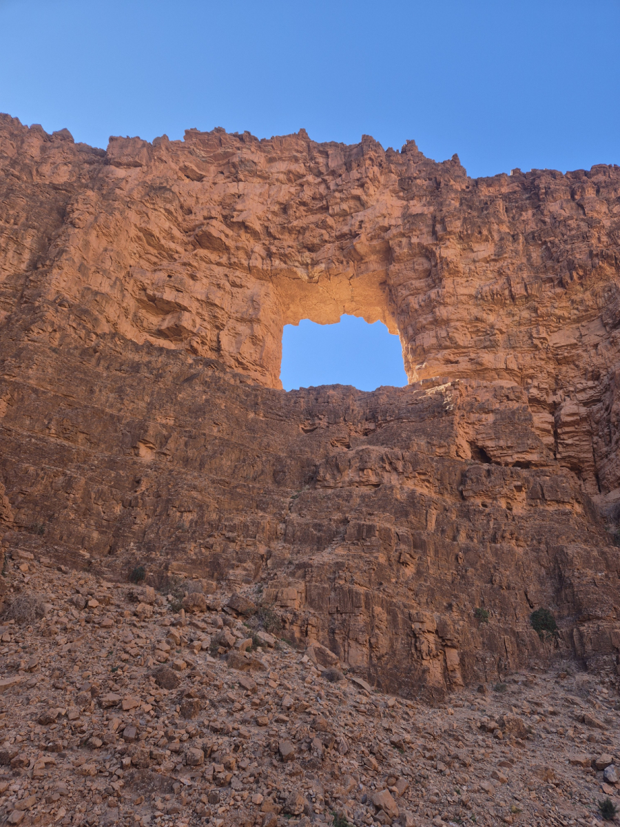Aoukerda ist eine Schlucht, die auch als der Grand Canyon von Marokko bezeichnet wird. Wir fahren mit dem Moped Richtung Süden und biegen in eine kleine Straße ein. Die führt uns in ein Tal, dass der Fluss wohl über Millionen Jahre in den roten Fels geschnitten hat. Es ist eine sehr kurvige Strecke durch eine unwirkliche Landschaft. Sie führt uns auch in eine Sackgasse, an deren Ende ein kleines Dorf liegt. Bevor wir es allerdings erreichen, halten wir am „La Fenêtre de la Vie“, dem Fenster des Lebens. Das ist ein fast quadratischer Einschnitt in den Fels. Die Natur hat dort einen schmalen Felsstreifen gebildet, ähnlich einer Haarnadelkurve und der Einschnitt geht komplett durch den Felsstreifen und bildet dadurch ein Fenster. Extrem beeindruckend. Hoffentlich geben unsere Fotos das wieder.