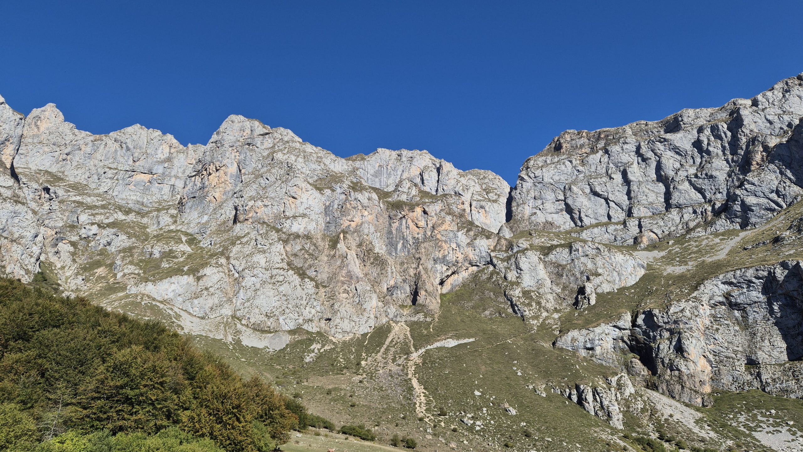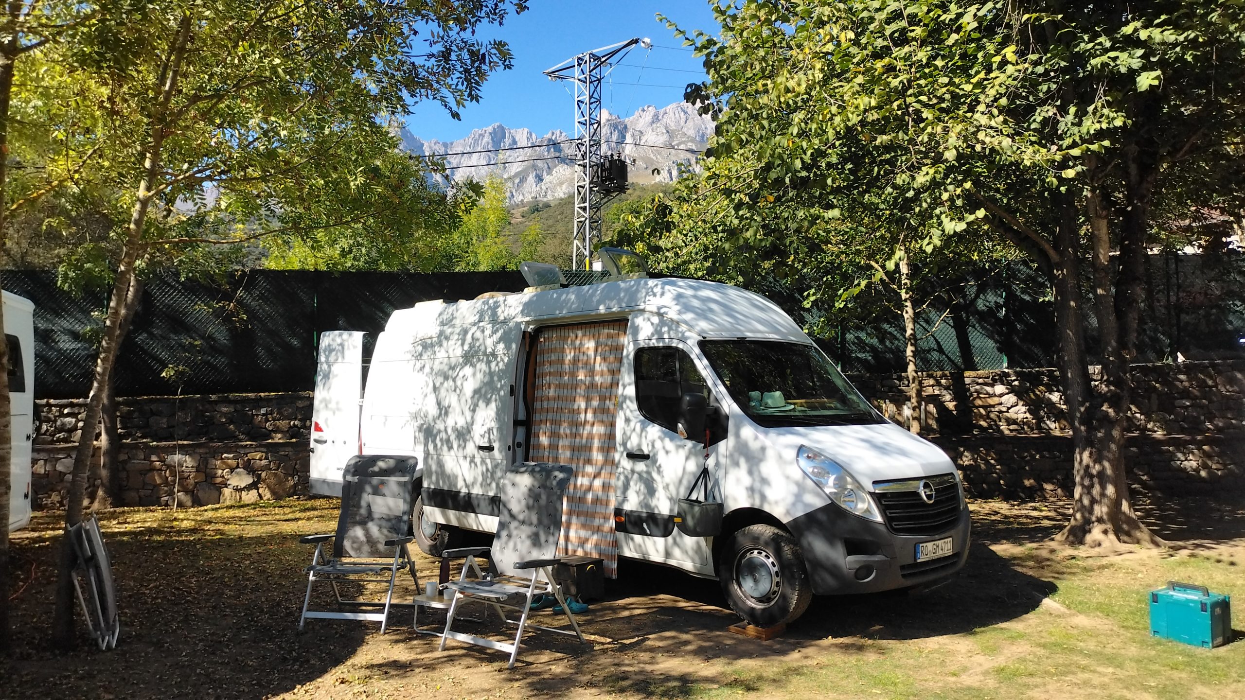 Wir stehen auf einem wunderschönen Campingplatz bei Potes mitten im Nationalpark. Vom Platz aus können wir einen Bergzug der Picos sehen.