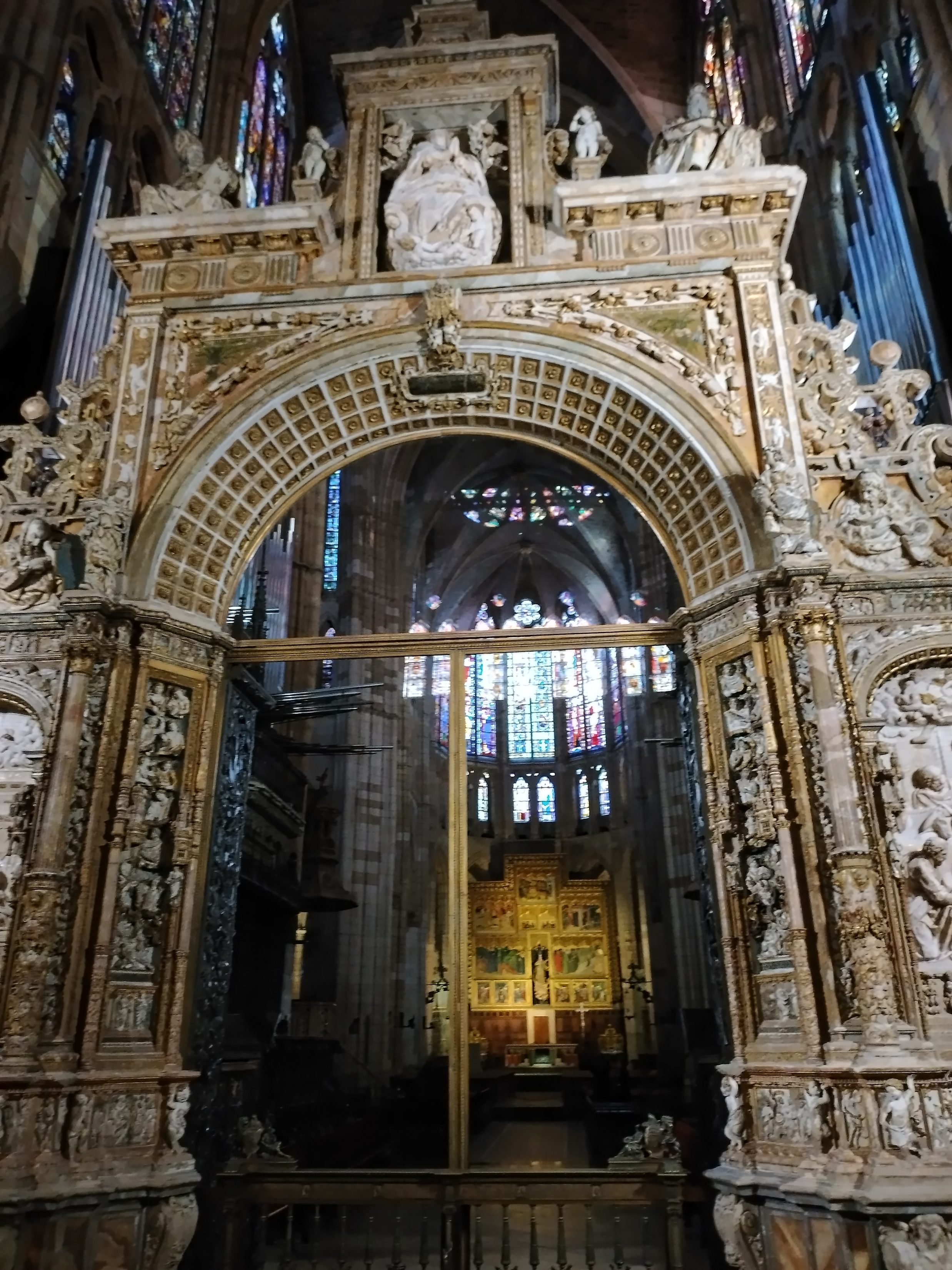 Heute haben wir die Picos Richtung Südosten verlassen, unser Ziel ist Leon, eine Stadt auf einer Hochebene (um die 1.000 Meter). Hier haben wir einen Stadt-Stellplatz gefunden und erkunden die Stadt zu Fuß. Neben den wunderschönen Altstadtgässchen ist die Hauptattraktion die Kathedrale.