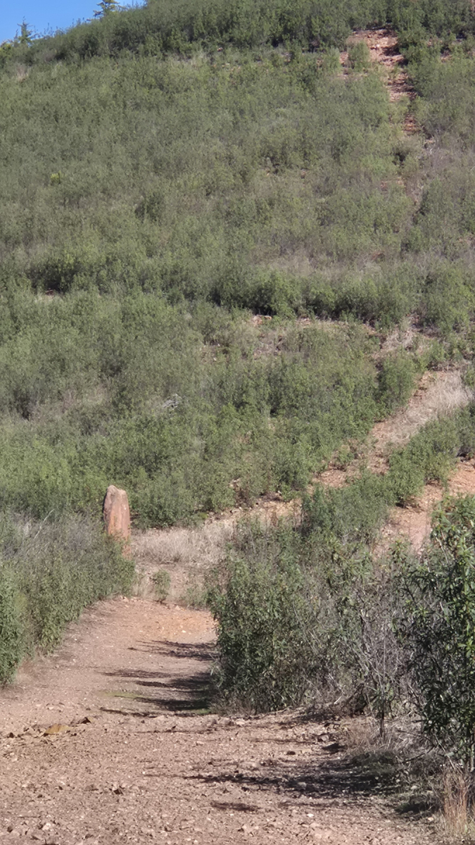 Auf der zweiten Mopedtour gab es dann wieder „alte Steine“, diesmal waren es Menhire, also prähistorische Monumente. Das sind einzelne aufrechtstehende Steine aus der Jungsteinzeit oder Bronzezeit, deren Bedeutung nicht ganz geklärt ist. In diesem Fall sind es vier Steine, die auf Hügel verteilt fast in einer Reihe stehen. Die Steine sind an einigen Stellen bearbeitet, man kann Linien und Punkte erkennen. An den Menhiren führt ein Wanderweg entlang, den wir abgegangen sind. Am Ende der Reihe hat man dann noch in Stein gehauene Gräber gefunden, die Necrópole da Pedreirinha, ebenfalls prähistorisch.