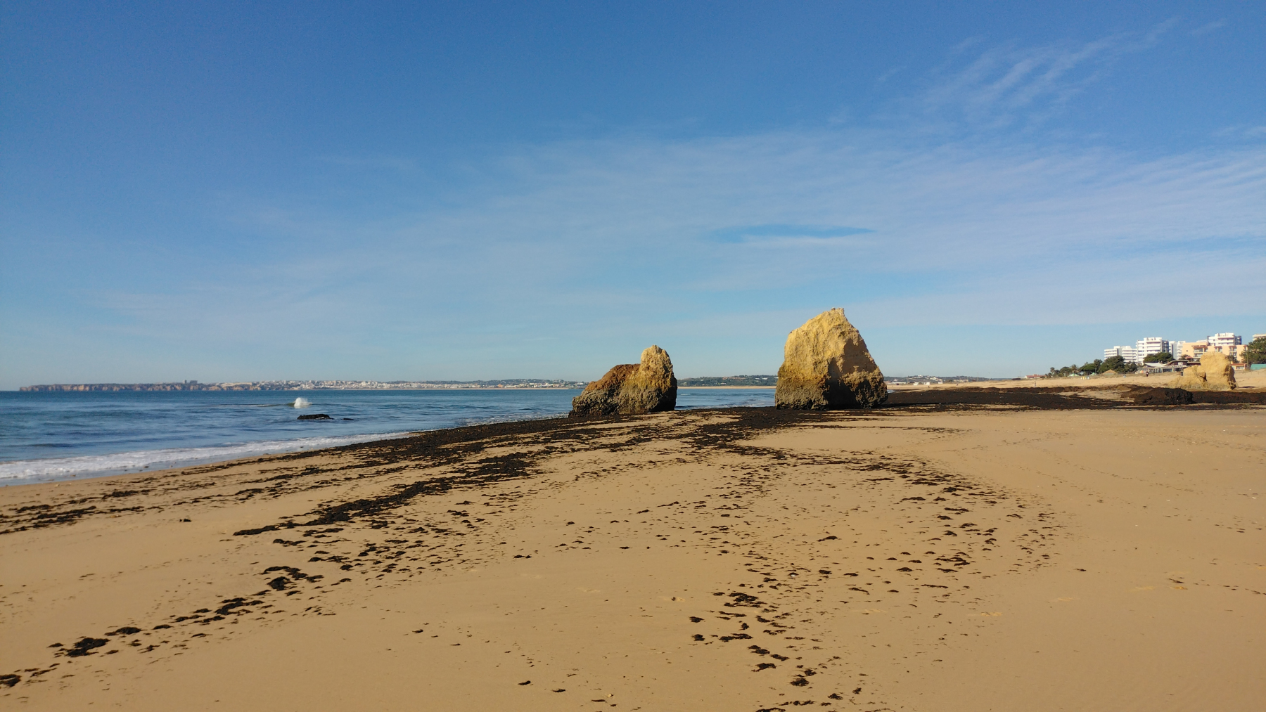 Am Strand von Alvor (unserem Campingplatz) liegen die Três Irmãos (Drei Brüder). Das sind markante Felsformationen, so wie es sie hier an der Felsküste sehr häufig gibt. Wenn Ebbe ist, werden Felsdurchgänge und Buchten freigelegt, die sonst nur mit dem Boot zu erreichen sind. Entlang der Küste gibt es einen Wanderweg, den wir teilweise gegangen sind. Dabei haben wir wirklich skurrile Dinge gesehen. Wir hoffen, dass unsere Fotos die Eindrücke halbwegs rüber bringen.