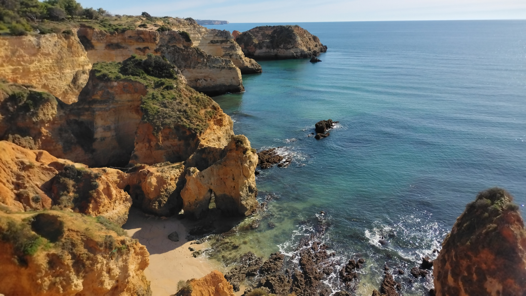 Am Strand von Alvor (unserem Campingplatz) liegen die Três Irmãos (Drei Brüder). Das sind markante Felsformationen, so wie es sie hier an der Felsküste sehr häufig gibt. Wenn Ebbe ist, werden Felsdurchgänge und Buchten freigelegt, die sonst nur mit dem Boot zu erreichen sind. Entlang der Küste gibt es einen Wanderweg, den wir teilweise gegangen sind. Dabei haben wir wirklich skurrile Dinge gesehen. Wir hoffen, dass unsere Fotos die Eindrücke halbwegs rüber bringen.
