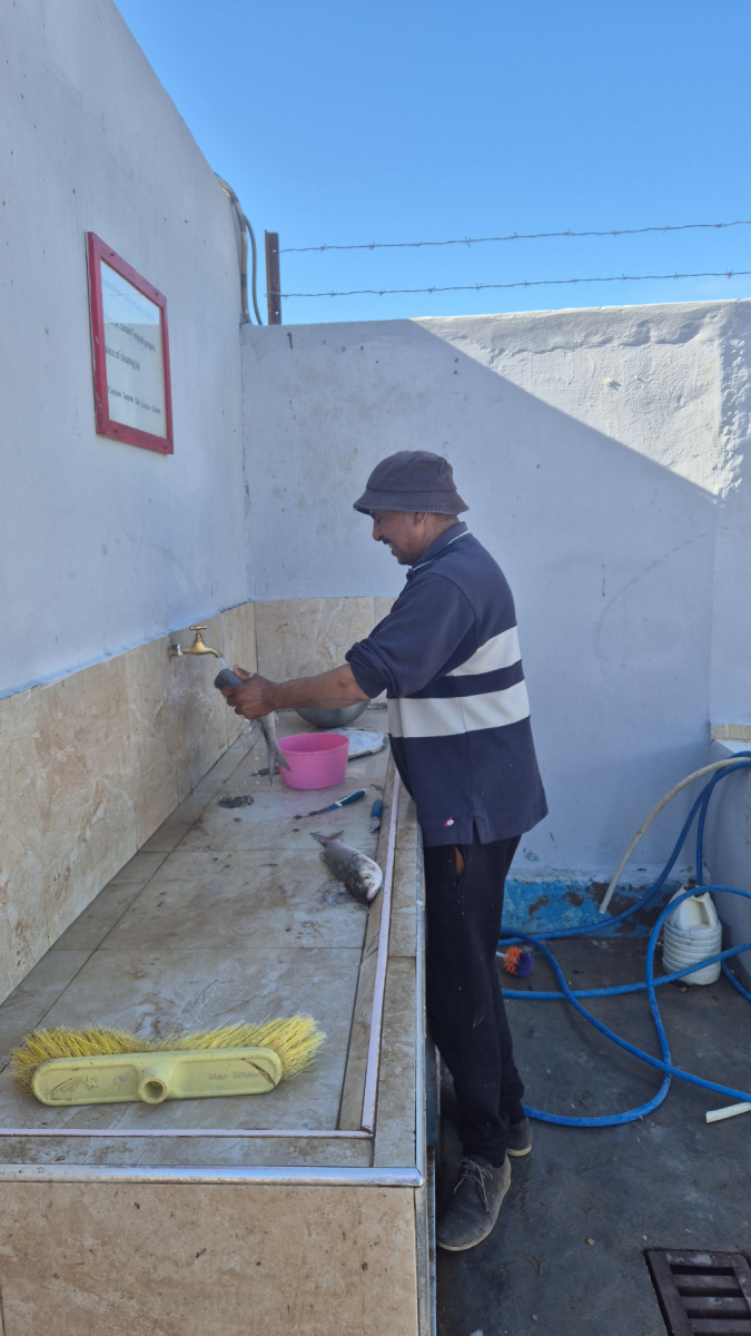 und nimmt den Fisch auch aus