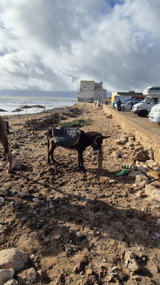 Wieder ein Stück weiter in den Süden. Unser nächster Campingplatz liegt in Sidi Kaouki, einem ehemaligen Fischerdorf, das in den letzten Jahren zum Hotspot für Wellenreiter geworden ist. Dementsprechend hat sich der Ort auch entwickelt. Alles hat sich auf die neue „Einnahmequelle“ eingestellt. Surfshops, Bretterverleih, hippe Cafés, Kamel- und Eselreiten am Strand, Quadverleih. Alles was das Touristenherz begehrt 😉