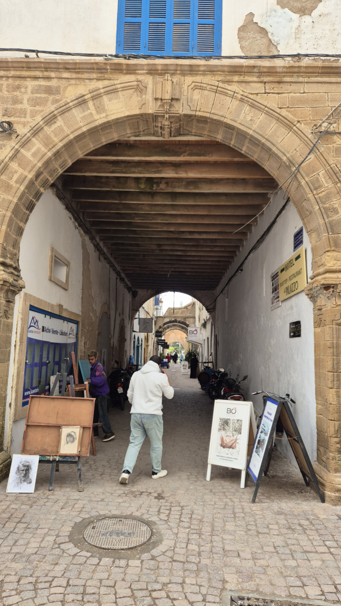 Essaouira ist eine Hafenstadt an Marokkos Atlantikküste. Die Medina (Altstadt) ist von Befestigungsmauern aus dem 18. Jahrhundert umgeben, die entlang der Küste verlaufen. Sie werden als Skala de la Kasbah bezeichnet und wurden einst von europäischen Ingenieuren entworfen. Die Mauern sind mit alten Messingkanonen gesäumt und bieten Meerblick. Es liegt ca. 30 Kilometer von unserem Campingplatz entfernt und wir fahren zur Besichtigung mit dem Moped.