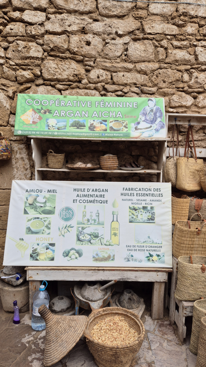 Zum Abschluss noch etwas Agra-Kultur. Die Gegend hier ist bekannt für ihr Argan-Öl, was übrigens auch auf den Campingplätzen von fahrenden Händlern angeboten wird. Das Argan-Öl wird mit sehr viel Aufwand in Handarbeit aus der Frucht des Arganbaumes (Arganie) gewonnen. Wenn jemand an Details interessiert ist, dann bitte hier bei wikipedia nachlesen, sehr interessant.