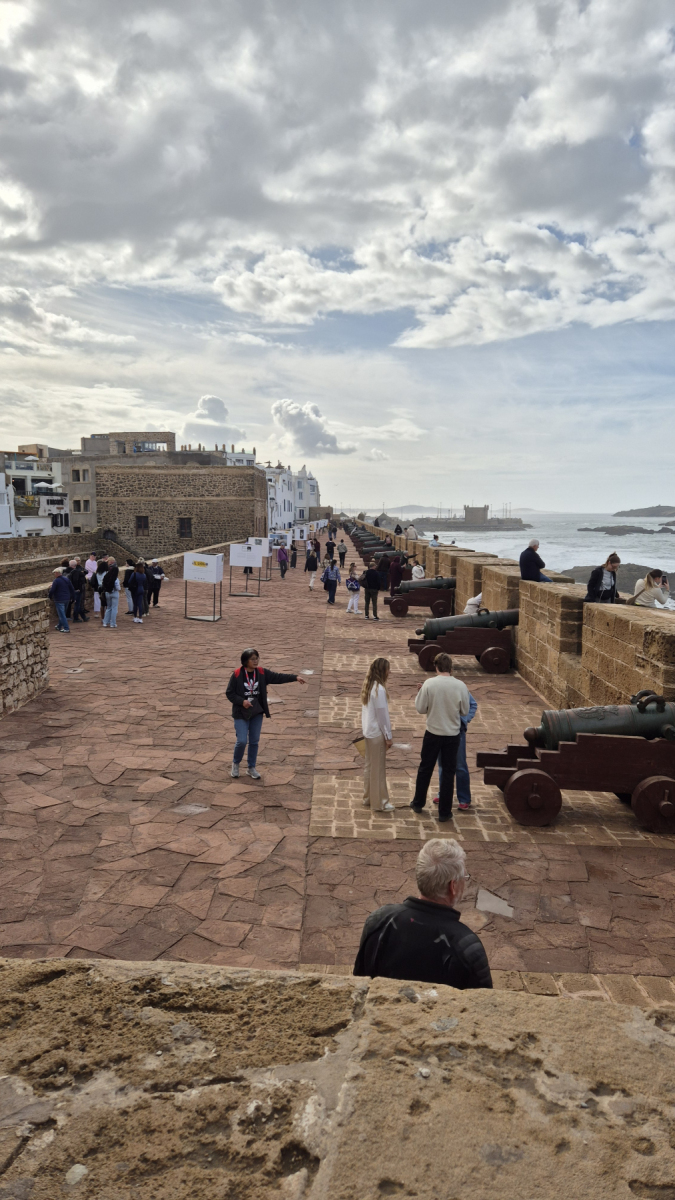 Essaouira ist eine Hafenstadt an Marokkos Atlantikküste. Die Medina (Altstadt) ist von Befestigungsmauern aus dem 18. Jahrhundert umgeben, die entlang der Küste verlaufen. Sie werden als Skala de la Kasbah bezeichnet und wurden einst von europäischen Ingenieuren entworfen. Die Mauern sind mit alten Messingkanonen gesäumt und bieten Meerblick. Es liegt ca. 30 Kilometer von unserem Campingplatz entfernt und wir fahren zur Besichtigung mit dem Moped.