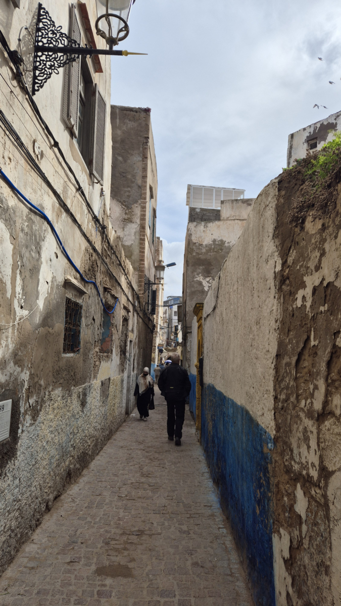 Essaouira ist eine Hafenstadt an Marokkos Atlantikküste. Die Medina (Altstadt) ist von Befestigungsmauern aus dem 18. Jahrhundert umgeben, die entlang der Küste verlaufen. Sie werden als Skala de la Kasbah bezeichnet und wurden einst von europäischen Ingenieuren entworfen. Die Mauern sind mit alten Messingkanonen gesäumt und bieten Meerblick. Es liegt ca. 30 Kilometer von unserem Campingplatz entfernt und wir fahren zur Besichtigung mit dem Moped.
