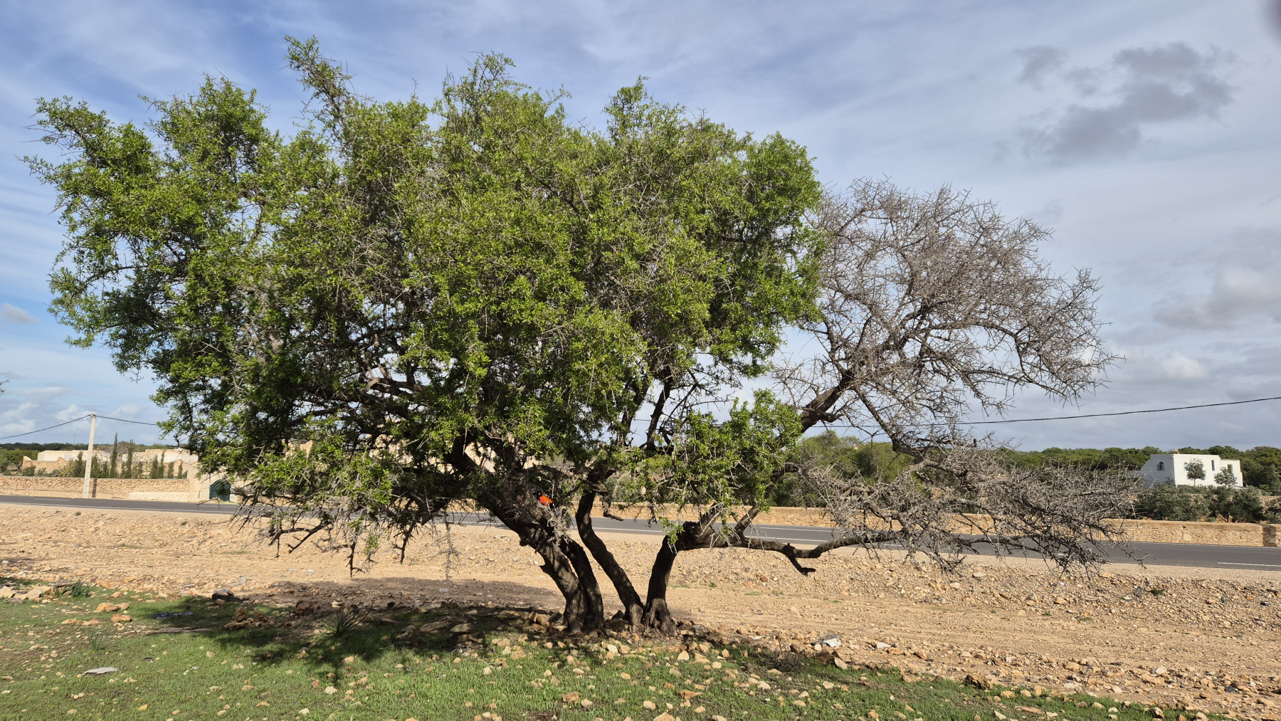 Zum Abschluss noch etwas Agra-Kultur. Die Gegend hier ist bekannt für ihr Argan-Öl, was übrigens auch auf den Campingplätzen von fahrenden Händlern angeboten wird. Das Argan-Öl wird mit sehr viel Aufwand in Handarbeit aus der Frucht des Arganbaumes (Arganie) gewonnen. Wenn jemand an Details interessiert ist, dann bitte hier bei wikipedia nachlesen, sehr interessant.
