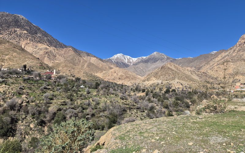 Es geht weiter nach Norden. Wir verlassen den Anti-Atlas und fahren über eine Passstraße nach Taroudannt. Der Ort liegt in einer Ebene zu Fuße des Hohen-Atlas Gebirges. Bei der Anfahrt sehen wir schon von weitem die schneebedeckten Gipfel des Gebirgszuges. Wir haben einen Campingplatz in der Nähe der Stadt gefunden.