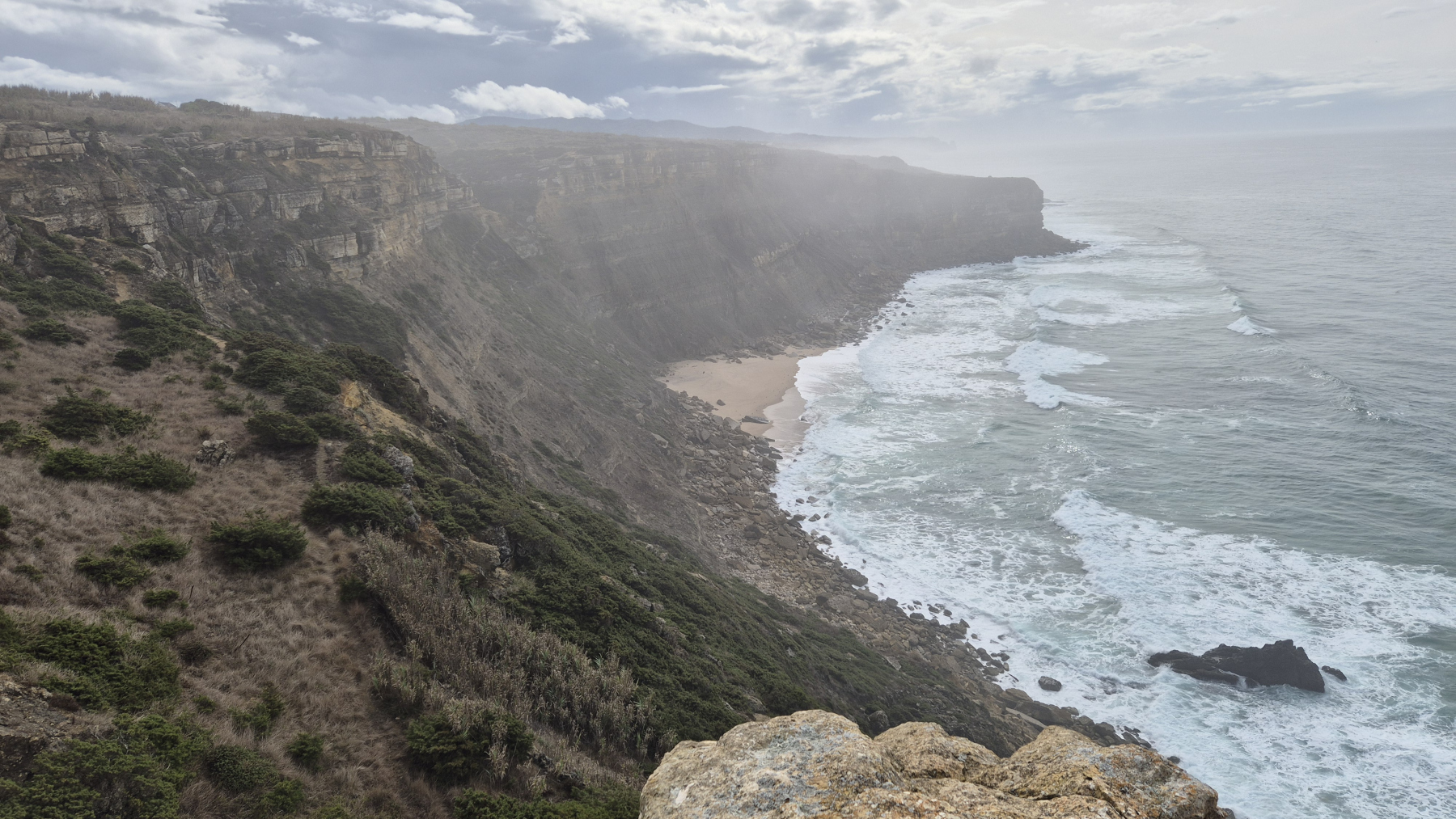 Praia ist das portugiesische Wort für Strand. Die Strände sind an diesem Teil der Westküste immer nur Einschnitte in die schroffen Felsen und nicht selten nur über steile Treppen oder gar Leitern zu erreichen.