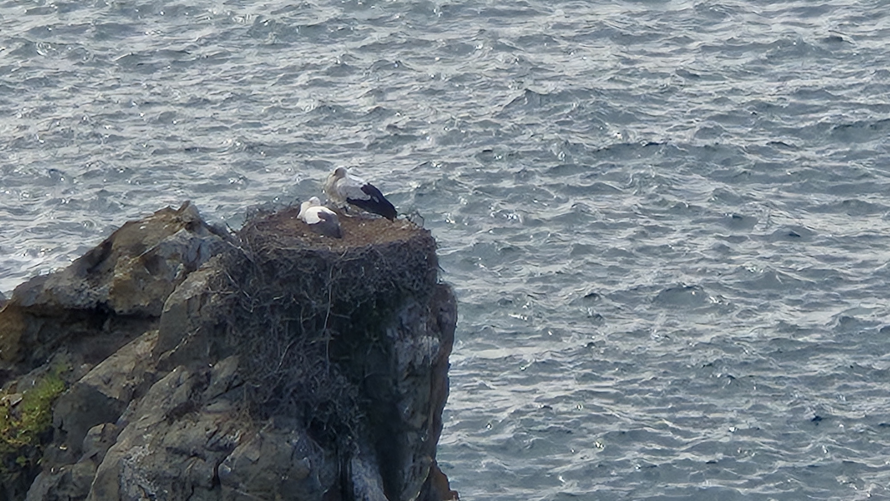 Farol ist das portugiesische Wort für Leuchtturm, der hier am Cabo Sardao steht. Allerdings sind wir nicht deswegen hier mit dem Moped hingefahren. Vielmehr wegen einer Besonderheit an der Felsküste. Hier nisten nämlich Störche auf den Felsvorsprüngen. Soweit wir wissen ist das ein absolutes Novum und kann nirgends anderswo gefunden werden.