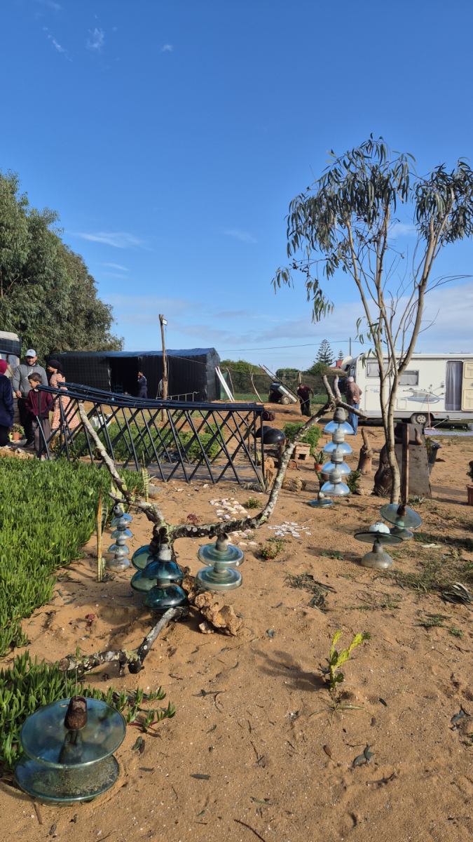 Er wird in „Park4Night“ sehr lobend erwähnt, familiengeführt, freundlich, sauber und hinter einer Düne, also Meeresnähe. Das Wetter ist immer noch nicht der Hit, oft kräftige Regenschauer, über dem Atlantik tobt sich ein Tief aus und dessen Ausläufer streift fast die gesamte Küste Marokkos. Ein Trost für uns ist, dass auch der Süden davon betroffen ist. Es macht also keinen Sinn große Strecken zu fahren. Auf dem Platz treffen wir ein deutsches Paar mit einem umgebauten Polizeibus. Die erzählen uns, dass einen Tag nach unserer Überfahrt nach Marokko, die Straße von Gibraltar mehrere Tage von starken Stürmen heimgesucht wurde. Sodass keine Fähre fahren durfte. Die Leute mussten die Tage abwarten bevor sie übersetzen konnten, wir hatten mal wieder Glück.