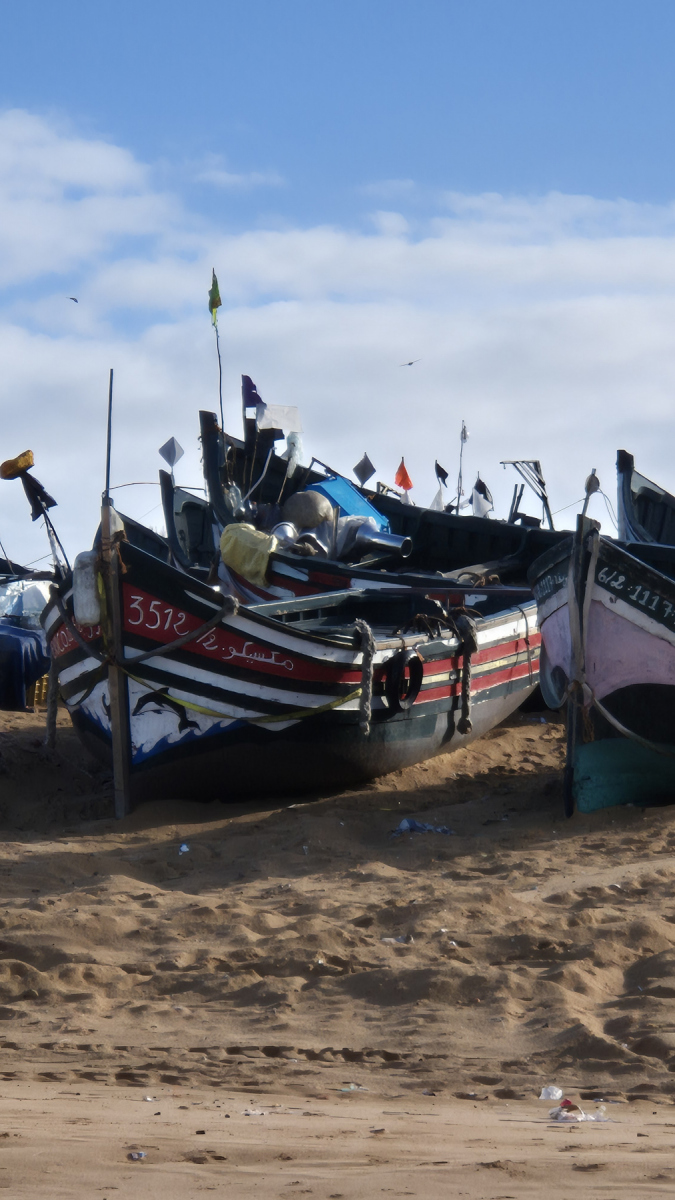 Er wird in „Park4Night“ sehr lobend erwähnt, familiengeführt, freundlich, sauber und hinter einer Düne, also Meeresnähe. Das Wetter ist immer noch nicht der Hit, oft kräftige Regenschauer, über dem Atlantik tobt sich ein Tief aus und dessen Ausläufer streift fast die gesamte Küste Marokkos. Ein Trost für uns ist, dass auch der Süden davon betroffen ist. Es macht also keinen Sinn große Strecken zu fahren. Auf dem Platz treffen wir ein deutsches Paar mit einem umgebauten Polizeibus. Die erzählen uns, dass einen Tag nach unserer Überfahrt nach Marokko, die Straße von Gibraltar mehrere Tage von starken Stürmen heimgesucht wurde. Sodass keine Fähre fahren durfte. Die Leute mussten die Tage abwarten bevor sie übersetzen konnten, wir hatten mal wieder Glück.