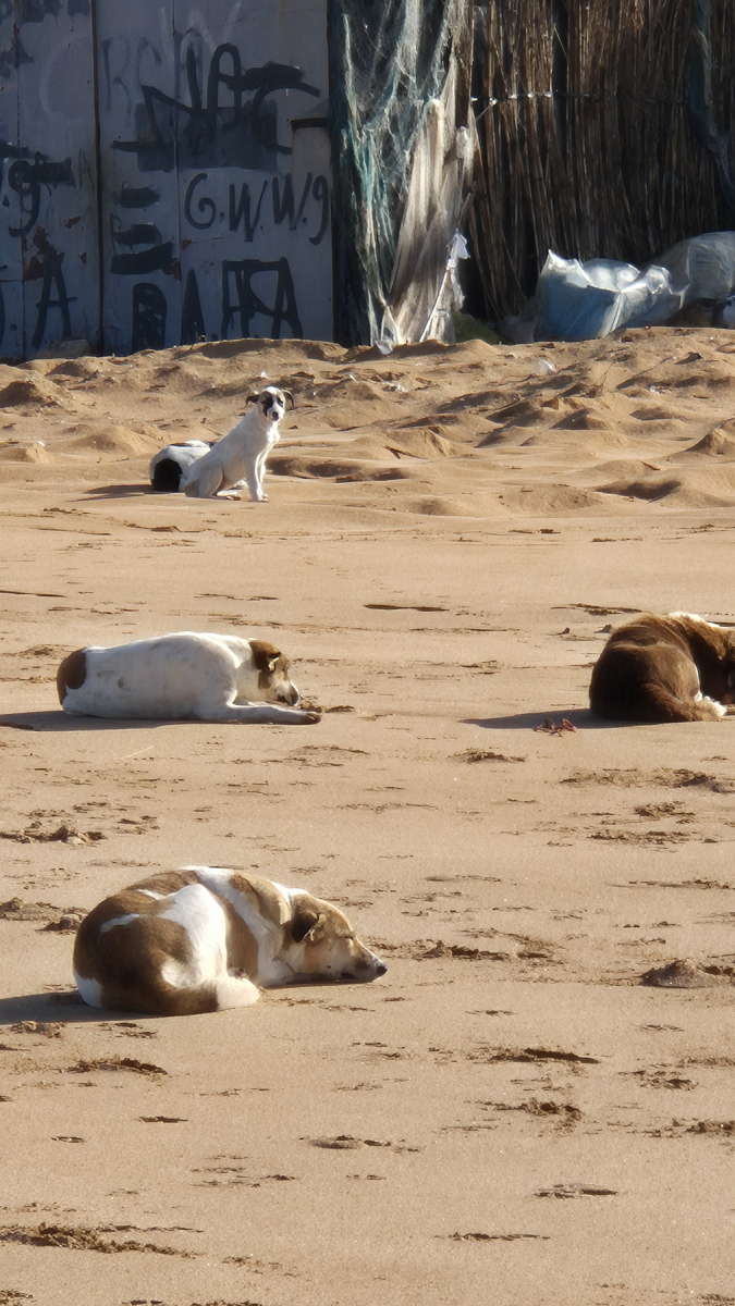 Er wird in „Park4Night“ sehr lobend erwähnt, familiengeführt, freundlich, sauber und hinter einer Düne, also Meeresnähe. Das Wetter ist immer noch nicht der Hit, oft kräftige Regenschauer, über dem Atlantik tobt sich ein Tief aus und dessen Ausläufer streift fast die gesamte Küste Marokkos. Ein Trost für uns ist, dass auch der Süden davon betroffen ist. Es macht also keinen Sinn große Strecken zu fahren. Auf dem Platz treffen wir ein deutsches Paar mit einem umgebauten Polizeibus. Die erzählen uns, dass einen Tag nach unserer Überfahrt nach Marokko, die Straße von Gibraltar mehrere Tage von starken Stürmen heimgesucht wurde. Sodass keine Fähre fahren durfte. Die Leute mussten die Tage abwarten bevor sie übersetzen konnten, wir hatten mal wieder Glück.