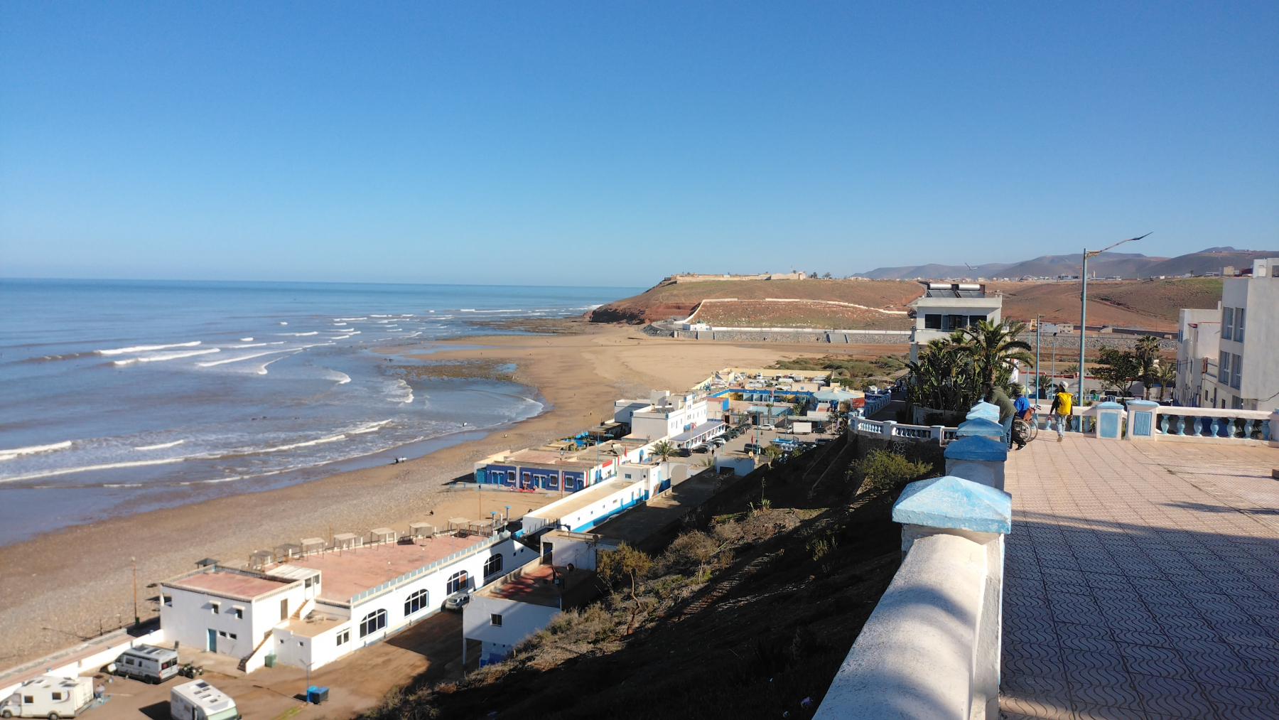 Wir sind weiter Richtung Süden unterwegs. Unser aktueller (06.01.2026) Platz ist Sidi Ifni. Ein ehemaliger spanischer Ort an der Küste. Heute ein Touristenort und Surfer-Hotspot. Es gibt drei Campingplätze und alle sind gut belegt. Wir haben Glück und bekommen einen Platz bei unserem Favoriten. Er liegt direkt am Meer, ist aber leider von einer Mauer umgeben. Es gibt aber eine Terrasse die man hochsteigen kann, von dort haben wir einen schönen Ausblick auf den Strand und Abends den Sonnenuntergang. Hier wollen wir ein paar Tage „rumhängen“, Spaziergänge am Strand und vielleicht einen Ausflug mit dem Moped machen.